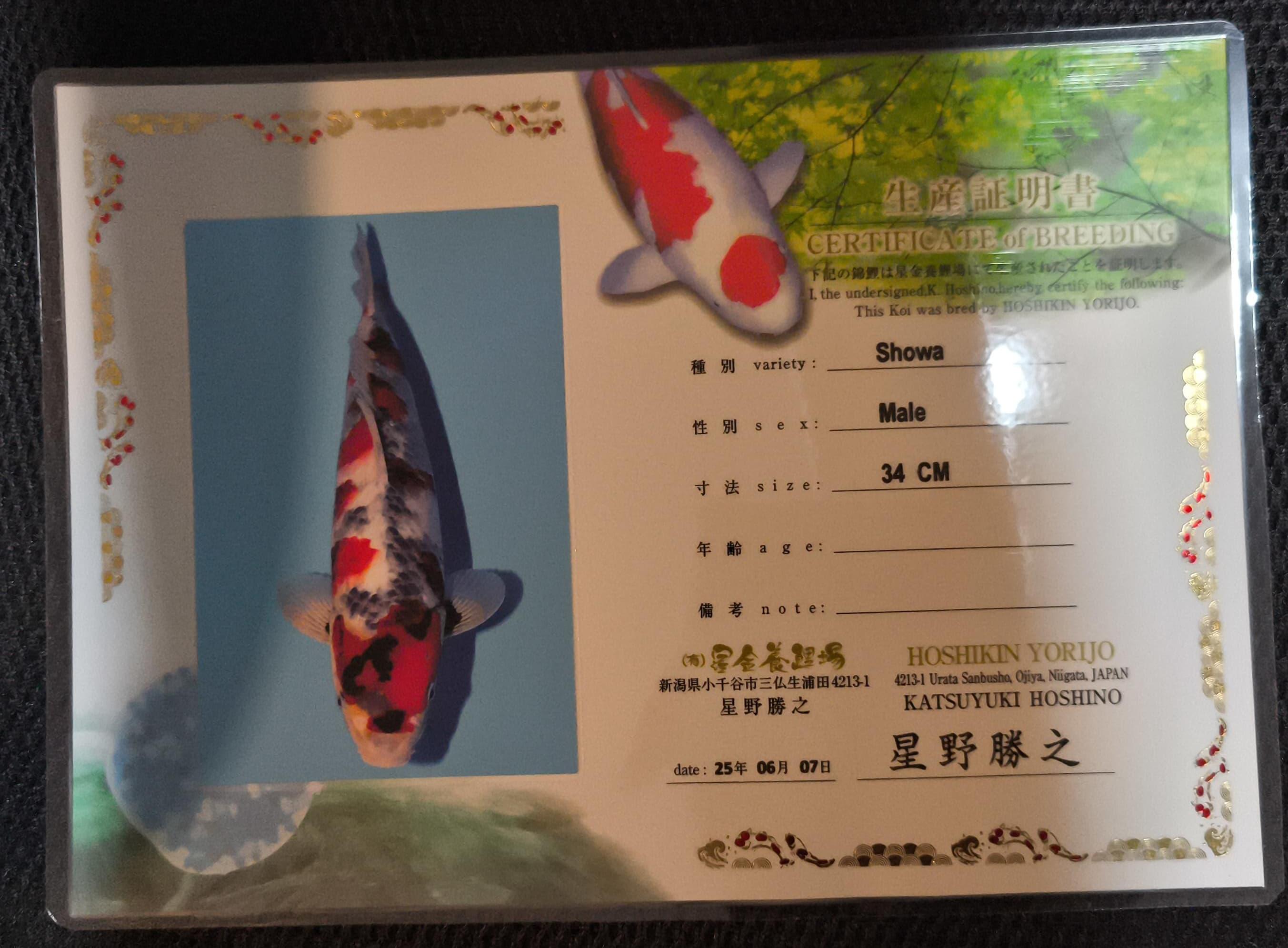 • Certificate: Isa Koi Farm