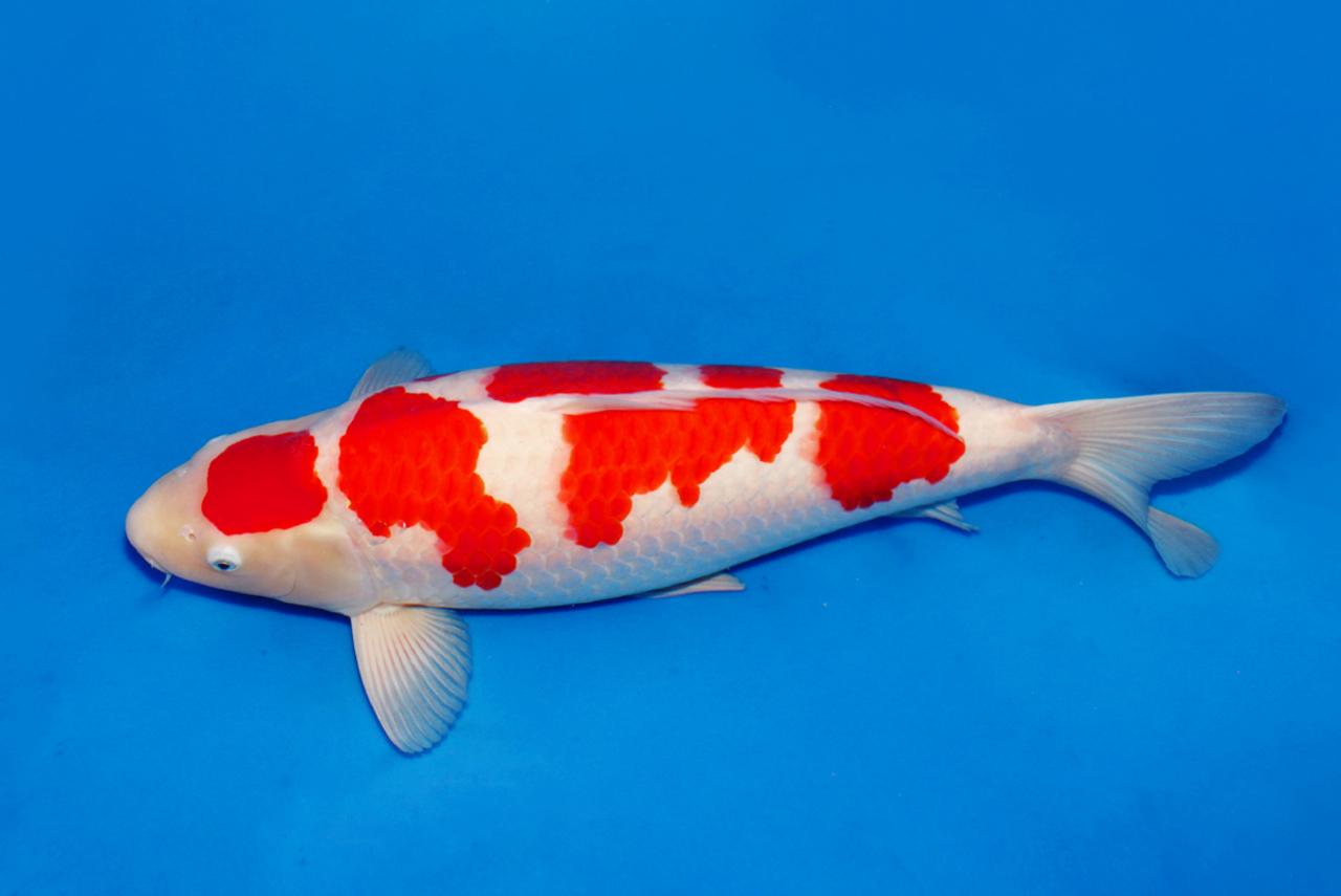Note:Super Nisai Kohaku from Dainichi Koi Farm, offspring of DMM. Super Skin Quality, Strong & Tategoi Body, & Beautiful Pattern. We got this fish from Dainichi Live Auction.
