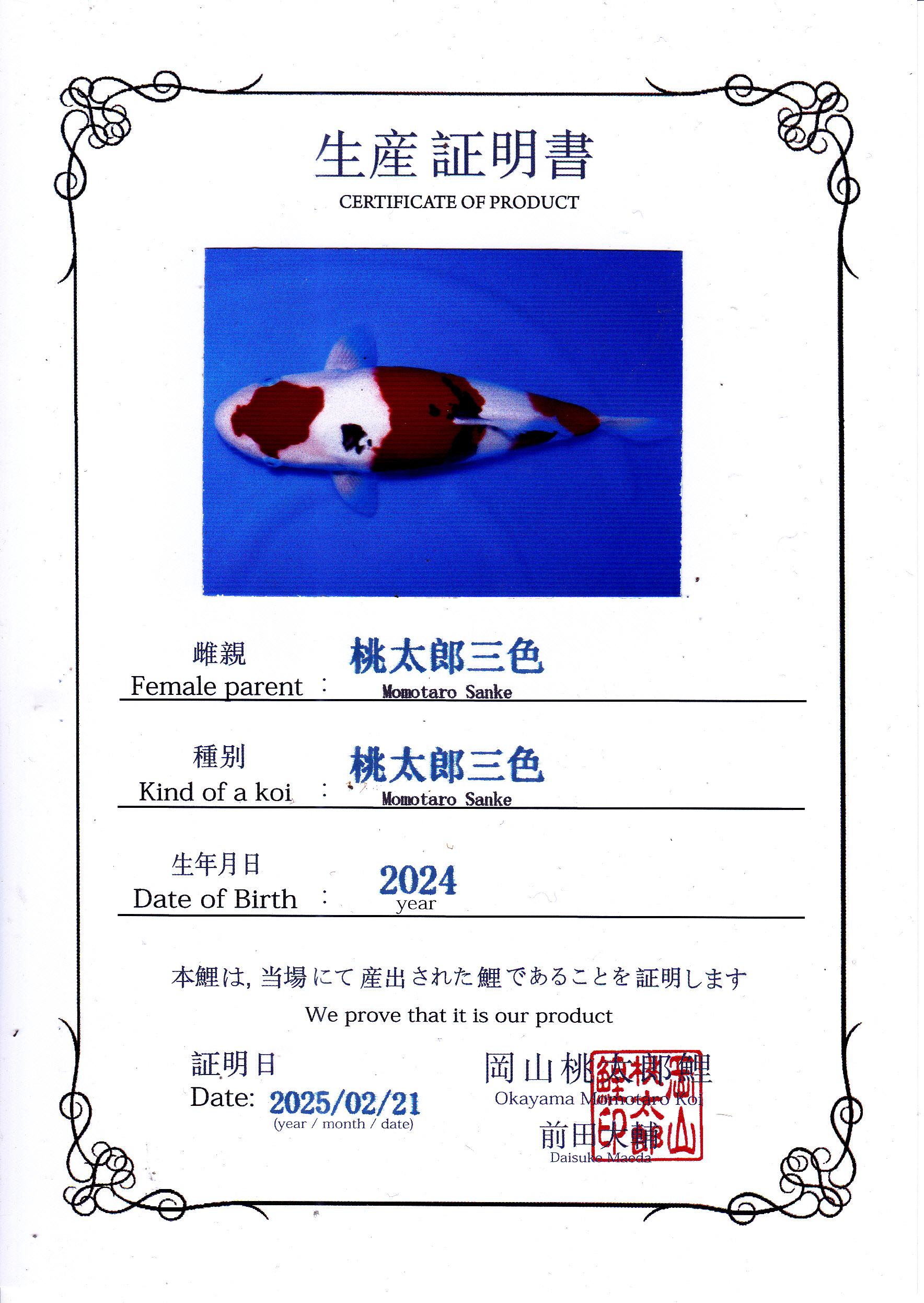 • Certificate: MOMOTARO KOI FARM